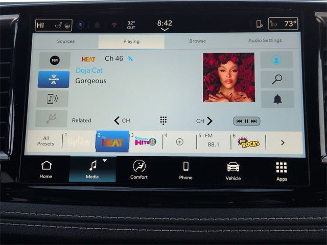 - AM/FM/Satellite w/Seek-Scan, Clock, Speed Compensated Volume Control, Steering Wheel Controls and Radio Data System