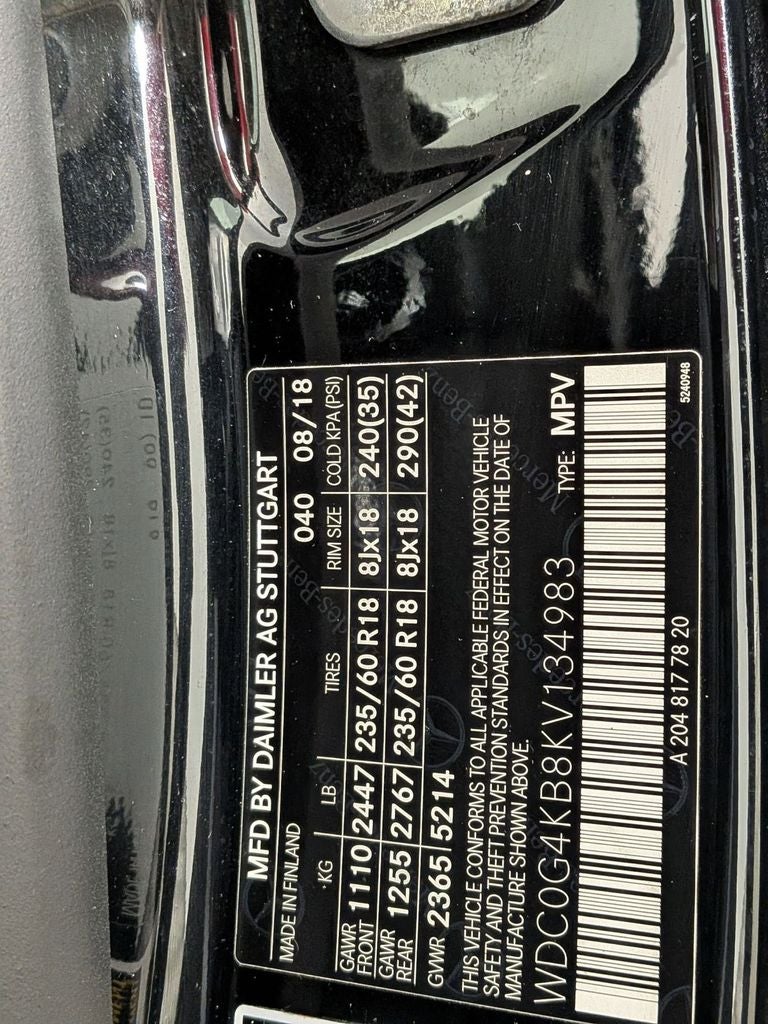 - Wheels 19 x 8-inch front and rear machined w/painted accents AMG aluminum wheels
