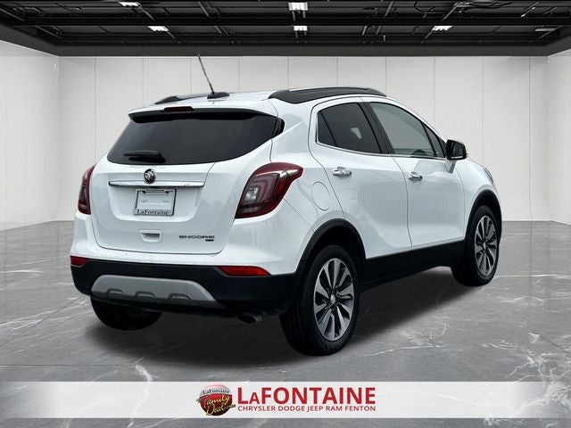 LaFontaine CDJR of Fenton is proud to offer this terrific-looking 2020 Buick Encore a positively attractive SUV with the following Features: Preferred Equipment Group 1SL, 18 Aluminum Wheels, 3.53 Final Drive Axle Ratio, 4-Wheel Disc Brakes, 6 Speakers, 6-Speaker Audio System, 6-Way Power Driver Seat Adjuster, 6-Way Power Front Passenger Seat Adjuster, ABS brakes, Air Conditioning, Alloy wheels, AM/FM radio: SiriusXM, Apple CarPlay/Android Auto, Auto-dimming Rear-View mirror, Automatic temperature control, Brake assist, Bumpers: body-color, Compass, Delay-off headlights, Driver door bin, Driver vanity mirror, Driver's Seat Mounted Armrest, Dual front impact airbags, Dual front side impact airbags, Electronic Stability Control, Emergency communication system: OnStar and Buick connected services capable, Exterior Parking Camera Rear, Front anti-roll bar, Front Bucket Seats, Front dual zone A/C, Front fog lights, Front License Plate Bracket, Front reading lights, Front wheel independent suspension, Fully automatic headlights, Garage door transmitter, Heated door mirrors, Heated Driver & Front Passenger Seats, Heated front seats, Heated steering wheel, Illuminated entry, Knee airbag, Leather-Appointed Seat Trim, Low tire pressure warning, Memory seat, Occupant sensing airbag, Outside temperature display, Overhead airbag, Panic alarm, Passenger door bin, Passenger vanity mirror, Power door mirrors, Power driver seat, Power passenger seat, Power steering, Power windows, Radio data system, Radio: Buick Infotainment System AM/FM Stereo, Rear seat center armrest, Rear side impact airbag, Rear window defroster, Rear window wiper, Remote keyless entry, Ride & Handling Suspension, Roof rack: rails only, Security system, SiriusXM Radio, Speed control, Speed-sensing steering, Split folding rear seat, Spoiler, Steering wheel mounted audio controls, Tachometer, Telescoping steering wheel, Tilt steering wheel, Traction control, Trip computer, Turn signal indicator mirrors, and Variably intermittent wipers.
