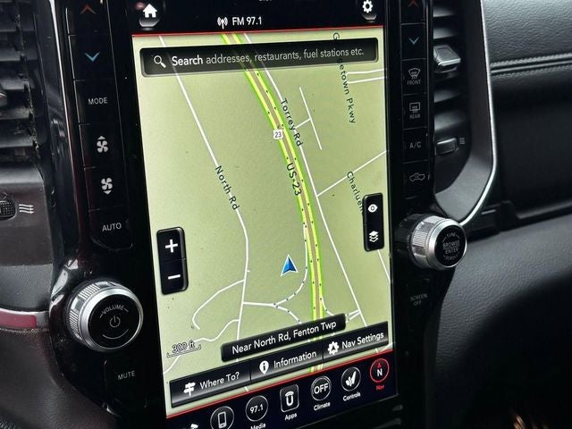 LaFontaine CDJR of Fenton is proud to offer this attractive 2021 Ram 1500 a positively great Truck with the following Features: Laramie Level 2 Equipment Group (DISC) (Auto Dimming Exterior Passenger Mirror, Auto High Beam Headlamp Control, Blind Spot & Cross Path Detection, Foam Bottle Insert (Door Trim Panel), GPS Navigation, harman/kardon 19 Speaker Premium Sound, Heated Second Row Seats, ParkSense Front/Rear Park Assist w/Stop, Radio: Uconnect 4C Nav w/8.4 Display, Rain Sensitive Windshield Wipers, Rear 60/40 Folding Split Recline Seat, Rear Underseat Compartment Storage, Remote Tailgate Release, Tailgate Ajar Warning Lamp, 1-Yr SiriusXM Guardian Trial, 4G LTE Wi-Fi Hot Spot, 5-Year SiriusXM Traffic Service, 5-Year SiriusXM Travel Link Service, 8.4 Touchscreen Display, Apple CarPlay, Disassociated Touchscreen Display, For Details, Visit DriveUconnect.com, For More Info, Call 800-643-2112, Google Android Auto, GPS Antenna Input, HD Radio, Integrated Center Stack Radio, Integrated Voice Command w/Bluetooth®, SiriusXM Radio Service, SiriusXM Satellite Radio, SiriusXM Traffic Plus, SiriusXM Travel Link, and USB Host Flip), Night Edition (Accent Color Premium Power Mirrors, Black Exterior Truck Badging, Black Headlamp Bezels, Black Interior Accents, Black Painted Exterior Mirrors Caps, Body Color Door Handles, Body Color Front Bumper, Body Color Rear Bumper w/Step Pads, Dual Exhaust w/Black Tips, Grille Surround 3 Black Texture 2 Black, Leather Trimmed Bucket Seats, Mopar Black Tubular Side Steps, Sport Performance Hood, #1 Seat Foam Cushion, 3 Rear Seat Head Restraints, 4 Way Front Headrests, Bucket Seats, Center Console Parts Module, Driver Seat Memory, Front Seat Back Map Pockets, Full Length Upgraded Floor Console, Heated Front Seats, Heated Steering Wheel, Power 4-Way Driver Lumbar Adjust, Power 4-Way Passenger Lumbar Adjust, Power 8-Way Driver & Passenger Seats, and Ventilated Front Seats), Quick Order Package 27H Laramie, 10 Speakers, 12 Touchscreen Display, 3.21 Rear Axle Ratio, 4-Wheel Disc Brakes, 48V Belt Starter Generator, ABS brakes, Adjustable pedals, Air Conditioning, Alloy wheels, AM/FM radio: SiriusXM, Anti-Spin Differential Rear Axle, Apple CarPlay/Android Auto, Audio memory, Auto-dimming door mirrors, Auto-dimming Rear-View mirror, Automatic temperature control, Brake assist, Bumpers: chrome, Chrome Exterior Mirrors, Compass, Delay-o