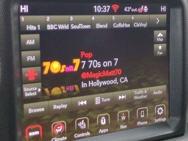 - Radio w/Seek-Scan, Clock, Speed Compensated Volume Control, Aux Audio Input Jack, Steering Wheel Controls, Voice Activation, Radio Data System and Uconnect External Memory Control