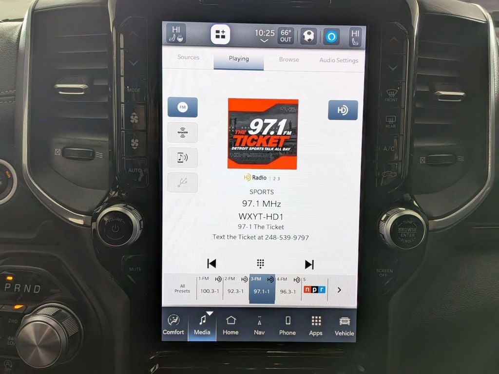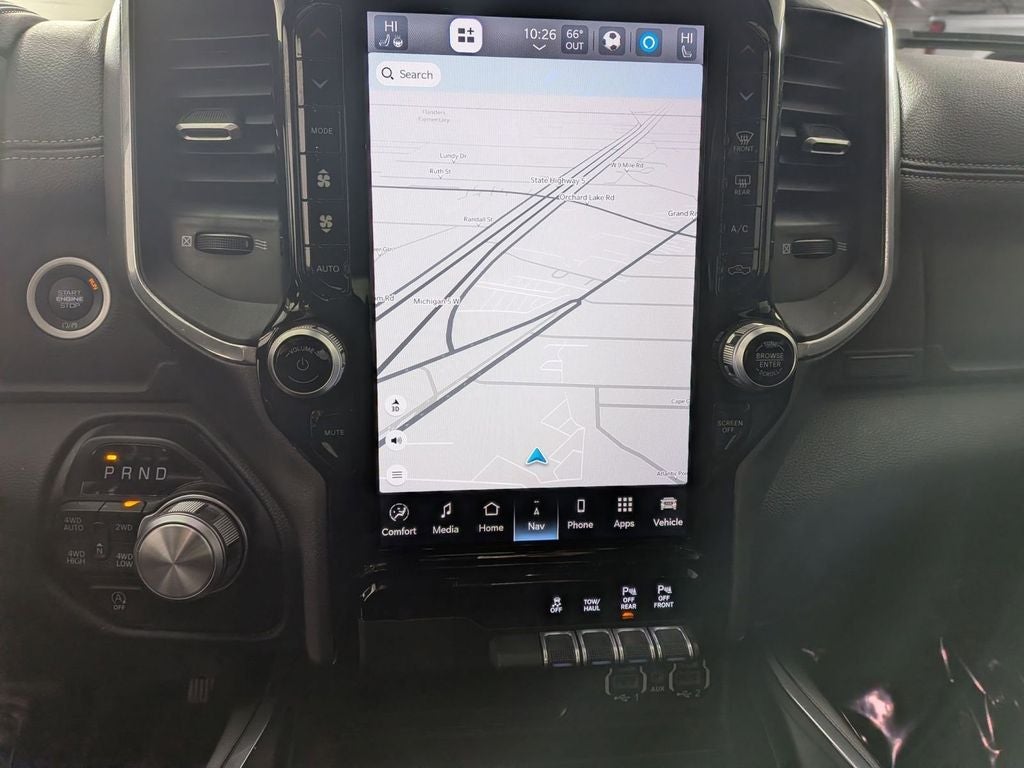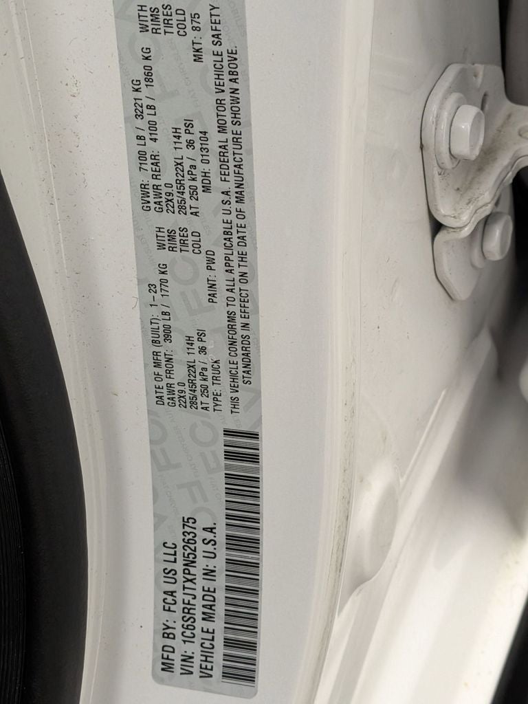 Class IV Receiver-Hitch, Handsfree Phone and Audio, Remote Start System, Ready–Alert Braking, Rain–Brake Support, 1500 Laramie, 4D Crew Cab, HEMI 5.7L V8 Multi Displacement VVT eTorque, 8-Speed Automatic, 4WD, Ivory White Tri-Coat Pearlcoat, Black Leather, 12 Touchscreen Display, 4G LTE Wi-Fi Hot Spot, Adjustable pedals, Anti-Spin Differential Rear Axle, Apple CarPlay, Auto High Beam Headlamp Control, Auto-Dimming Exterior Driver Mirror, Auto-dimming Rear-View mirror, Automatic temperature control, Blind Spot & Cross Path Detection, Brake assist, Class IV Receiver Hitch, Connected Travel & Traffic Services, Driver Seat Memory, Dual Exhaust w/Black Tips, Dual front impact airbags, Dual front side impact airbags, Electric Shift-On-Demand Transfer Case, Exterior Mirrors w/Memory, Front dual zone A/C, Front fog lights, Front LED Fog Lamps, Fully automatic headlights, Garage door transmitter, Google Android Auto, GPS Navigation, harman/kardon 19 Speaker Premium Sound, Heated Front Seats, Heated front seats, Heated Steering Wheel, Illuminated entry, Integrated Voice Command w/Bluetooth®, Laramie Level B Equipment Group, Leather Trimmed Bucket Seats, LED Reflector Headlamps, Low tire pressure warning, Memory seat, Night Edition, Occupant sensing airbag, Overhead airbag, ParkSense Front/Rear Park Assist w/Stop, ParkView Rear Back-Up Camera, Pedal memory, Power 8-Way Driver & Passenger Seats, Power driver seat, Power-Folding Mirrors, Rain Sensitive Windshield Wipers, Rear Power Sliding Window, Rear Underseat Compartment Storage, Rear Window Defroster, Remote keyless entry, Remote Tailgate Release, SiriusXM Radio Service, SiriusXM w/360L, Sport Performance Hood, Steering wheel mounted audio controls, Telescoping steering wheel, Tilt steering wheel, Ventilated Front Seats, Wheels: 22 x 9 Forged Aluminum.