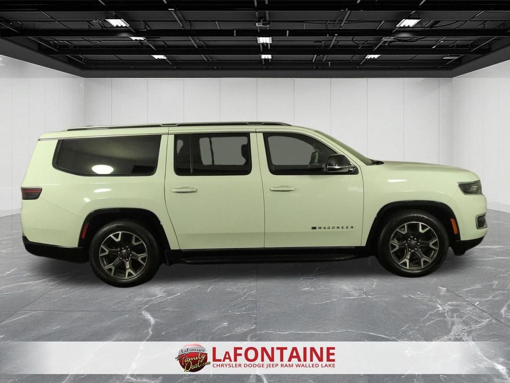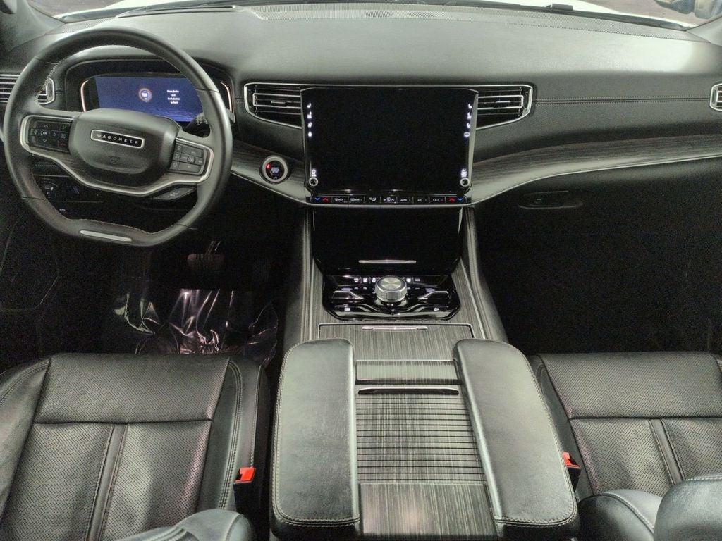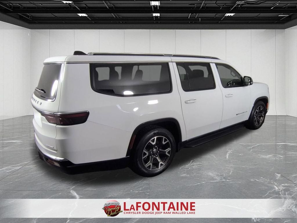 10.1 Inch Touchscreen Display, 4G LTE Wi-Fi Hot Spot, Class IV Receiver-Hitch, Handsfree Phone and Audio, Remote Start System, Active Lane–Management System, Full–Speed Forward–Collision Warning Plus, Blind–Spot and Cross–Path Detection, Adaptive Cruise Control with Stop and Go, ParkSense® Front and Rear Park–Assist with Stop, Pedestrian Emergency–Braking, Wireless Charging–Pad, Alpine 9–Speaker System with Subwoofer, Wagoneer L Series III, 4D Sport Utility, 3.0L I6, 8-Speed Automatic, 4WD, Bright White Clearcoat, Black Leather, Adjustable pedals, Anti-whiplash front head restraints, Apple CarPlay/Android Auto, Auto High-beam Headlights, Auto-dimming Rear-View mirror, Auto-leveling suspension, Automatic temperature control, Brake assist, Dual front impact airbags, Dual front side impact airbags, Emergency communication system: Wagoneer Connect, Exterior Parking Camera Rear, Front dual zone A/C, Fully automatic headlights, Garage door transmitter, Heads-Up Display, Heated front seats, Heated rear seats, Heated steering wheel, Illuminated entry, Knee airbag, Leather Trimmed Bucket Seats, Low tire pressure warning, Memory seat, Navigation System, Occupant sensing airbag, Overhead airbag, Pedal memory, Power adjustable front head restraints, Power driver seat, Power Liftgate, Power passenger seat, Quadra-Lift Air Suspension, Rain sensing wipers, Rear air conditioning, Remote keyless entry, Speed-sensing steering, Speed-Sensitive Wipers, Steering wheel memory, Steering wheel mounted audio controls, Telescoping steering wheel, Tilt steering wheel, Ventilated front seats, Wheels: 20 x 9.0 Aluminum (DISC).