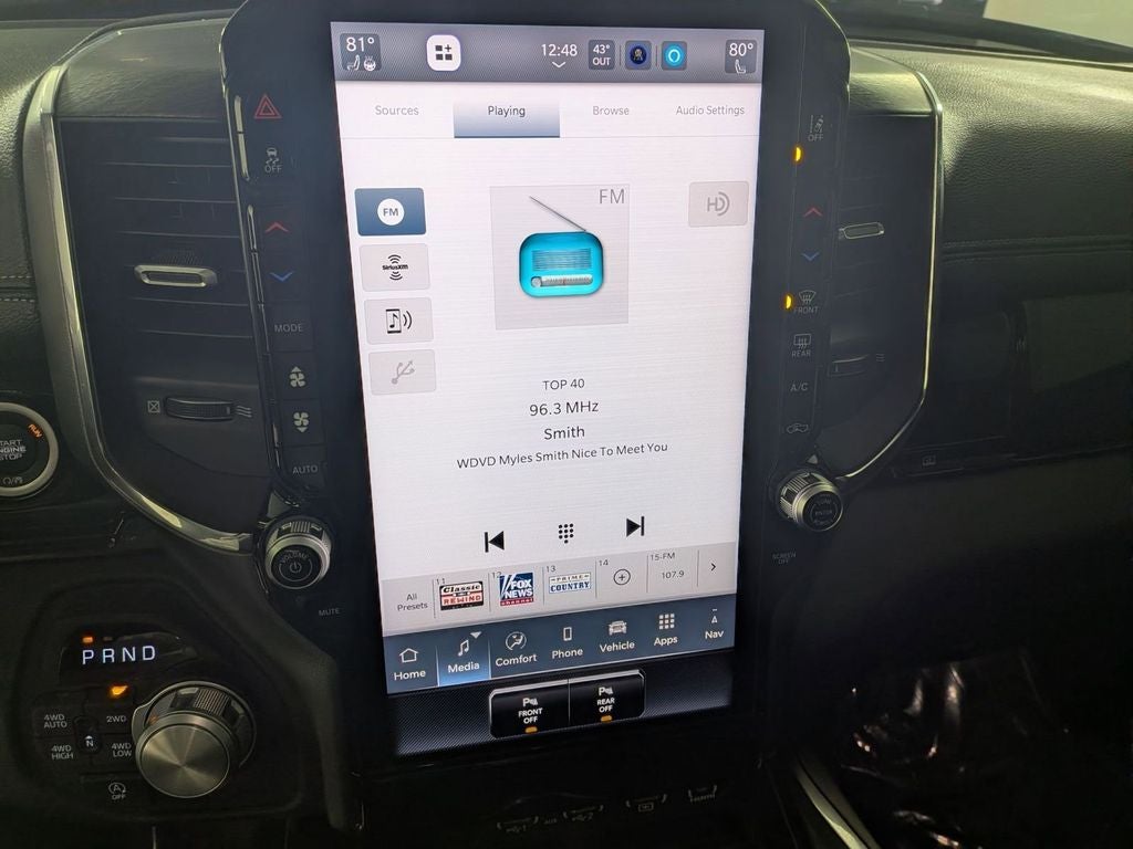 Class IV Receiver-Hitch, Handsfree Phone and Audio, Parksense Front and Rear Park Assist, Remote Start System, Active Lane–Management System, Full–Speed Forward–Collision Warning Plus, Blind–Spot and Cross–Path Detection, Advanced Brake–Assist, Adaptive Cruise Control with Stop and Go, Pedestrian Emergency Braking, Power Tailgate, Front Passenger Interactive Display, 1500 Laramie, 4D Crew Cab, 3.0L I6, 8-Speed Automatic, 4WD, Hydro Blue Pearlcoat, Black Leather, 14.4 Touchscreen Display, 3.55 Rear Axle Ratio, 4G LTE Wi-Fi Hot Spot, Active Noise Control System, Adjustable pedals, Anti-Spin Differential Rear Axle, Apple CarPlay/Android Auto, Auto High-beam Headlights, Auto Power-Folding Mirrors, Auto-Dimming Exterior Driver Mirror, Auto-dimming Rear-View mirror, Automatic temperature control, Brake assist, Cluster 12 TFT Color Display, Connected Travel and Traffic Services, Convex Wide-Angle Exterior Mirror Insert, Dual Exhaust with Black Tips, Dual front impact airbags, Dual front side impact airbags, Dual-Pane Panoramic Sunroof, Exterior Mirrors Approach Lamps, Exterior Mirrors Courtesy Lamps, Exterior Mirrors with Memory, Front dual zone A/C, Front fog lights, Front Passenger Interactive Display, Fully automatic headlights, Garage door transmitter, GPS Navigation, Harman/Kardon 19 Speaker Premium Sound, Heated front seats, Heated rear seats, Heated steering wheel, Illuminated entry, Integrated Voice Command with Bluetooth®, Laramie Level 2 Equipment Group, Leather Trimmed Bucket Seats, Low tire pressure warning, Memory seat, Mopar Black Tubular Side Steps, MOPAR Front and Rear Rubber Floor Mats, Night Edition, Occupant sensing airbag, Overhead airbag, ParkView Rear Back-Up Camera, Pedal memory, Power driver seat, Power passenger seat, Power Tailgate, Proximity Approach/Departure Lamps, Rain Sensitive Windshield Wipers, Remote keyless entry, SiriusXM Radio Service, SiriusXM with 360L, Speed control, Sport Performance Hood, Steering wheel mounted audio controls, Telescoping steering wheel, Tilt steering wheel, Ventilated front seats, Wheels: 22 x 9 Forged Aluminum.